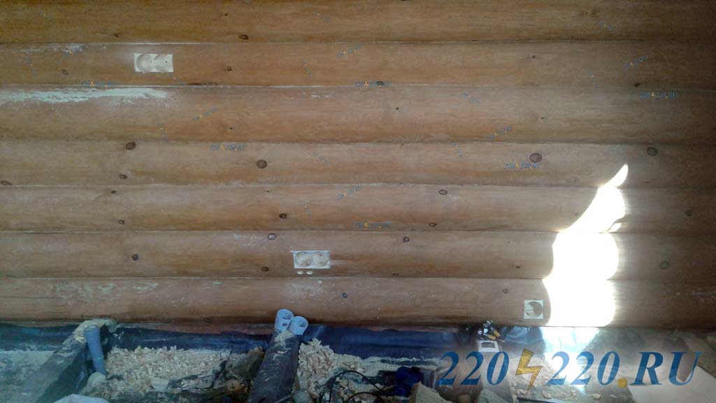 Электромонтаж розеток и выключателей в срубе, Подольск |